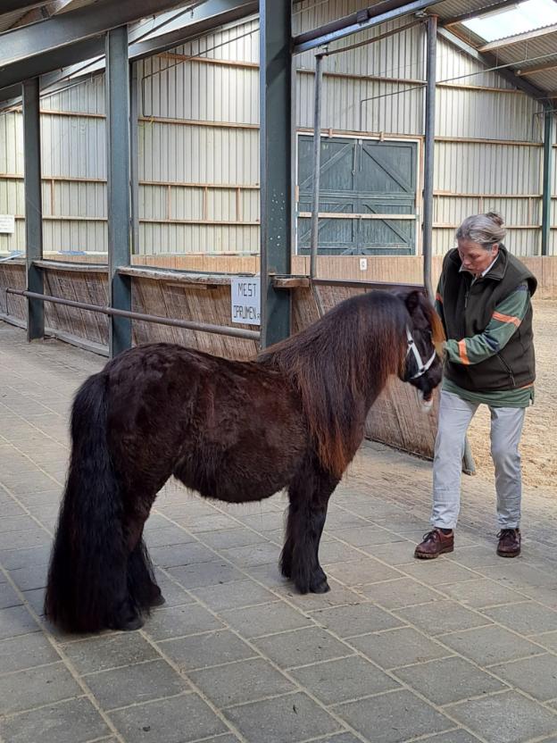 Alle twee pony’s werden 96 cm gemeten. De inspecteur ging verder met de lineaire score en daarna deed de veterinair haar inspectie.